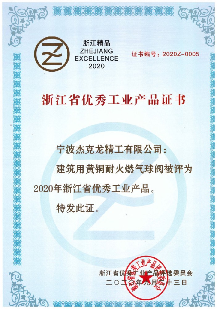 2018年11月8日,杰克龍精工公司正式獲得由浙江制造國際認證聯盟和杭州漢德質量認證服務有限公司聯合簽發的《浙江制造認證證書》,